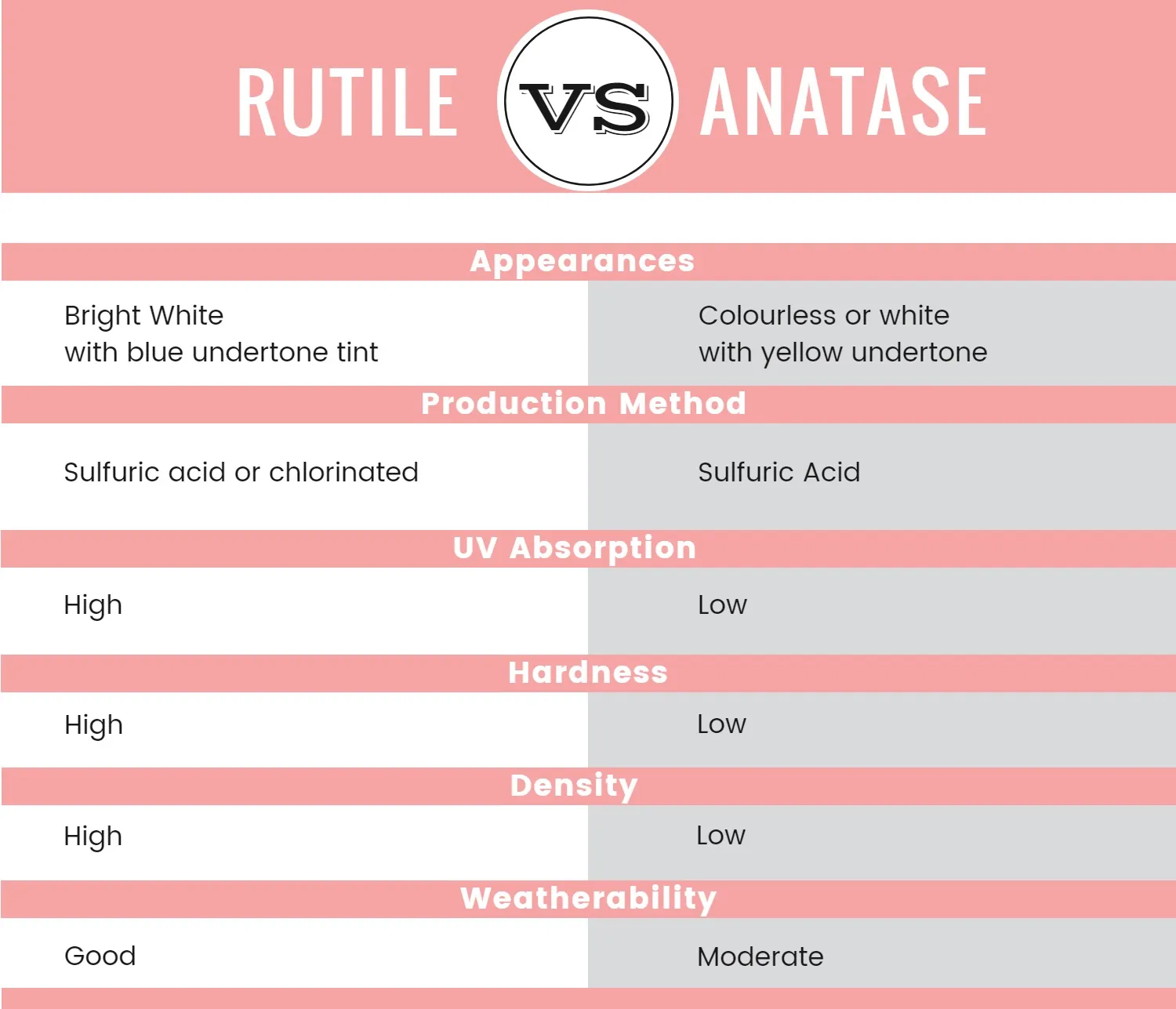 - ▸Secara umum, bahan ini berasal dari rutile dan anatase.